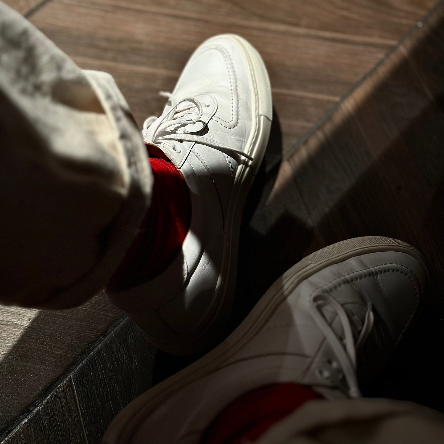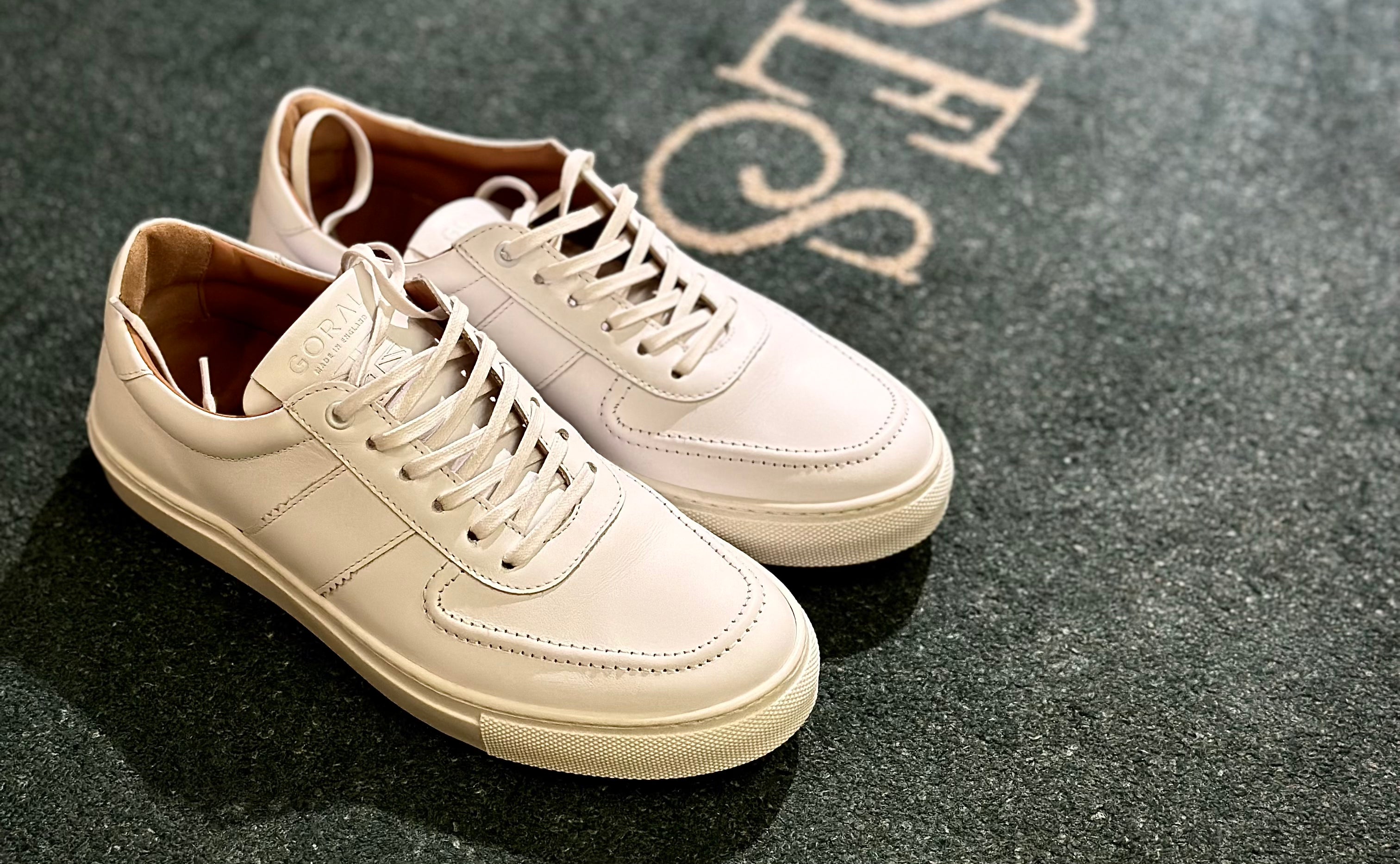 The Houses x Goral HADFIELD All White Leather Sneakers, A smart trainer with side overlays and aircord piping outlining the vamp and toe box.