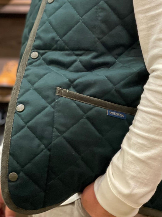 LAVENHAM x HOUSES THORNHAM Wool Quilt Gilet Bottle Green