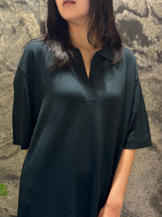 JSY TAYA Women Sea Island Cotton Dress Skipper Collar Rainforest