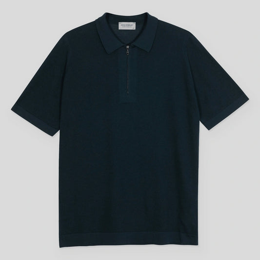 JSY Men Sea Island Cotton Pique Half Zipped Polo Shirt Rainforest