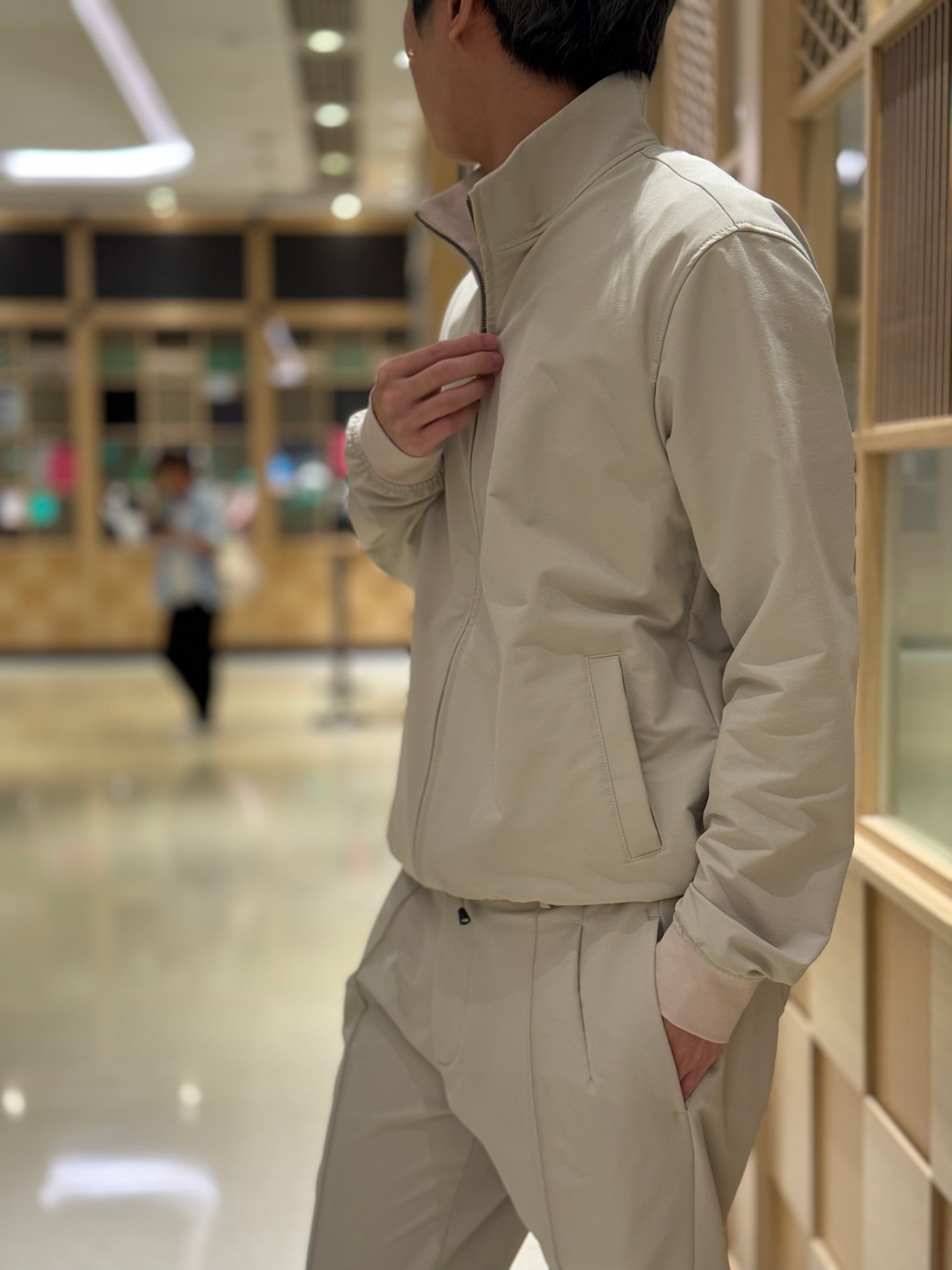 The Puccino is a stand-up collar blouson with a simple design based on the silhouette of GIABS's classic hoodie 'Pucci', with a different collar design. The slim silhouette inherited from Pucci makes this a utility blouson that can be worn not only as an outerwear but also as an inner layer for a coat.