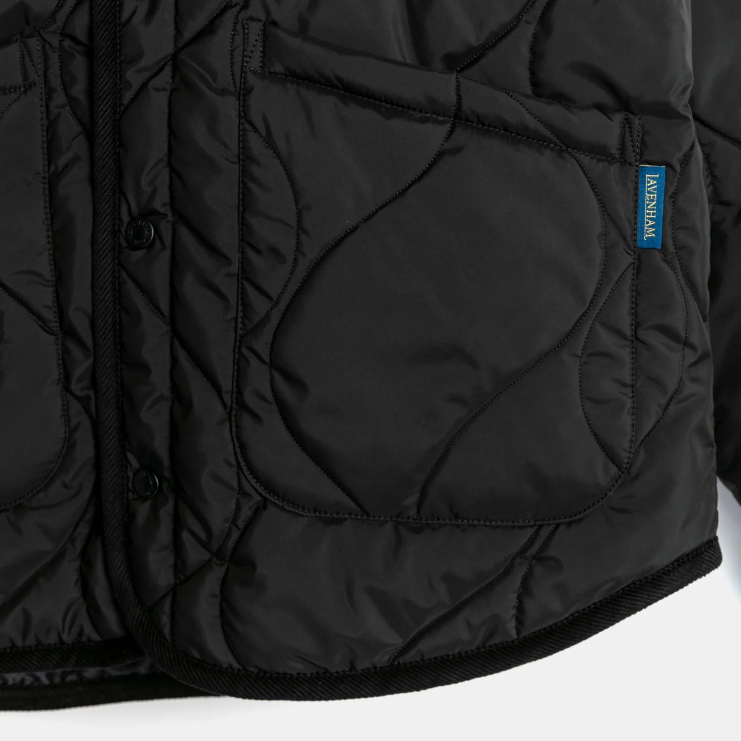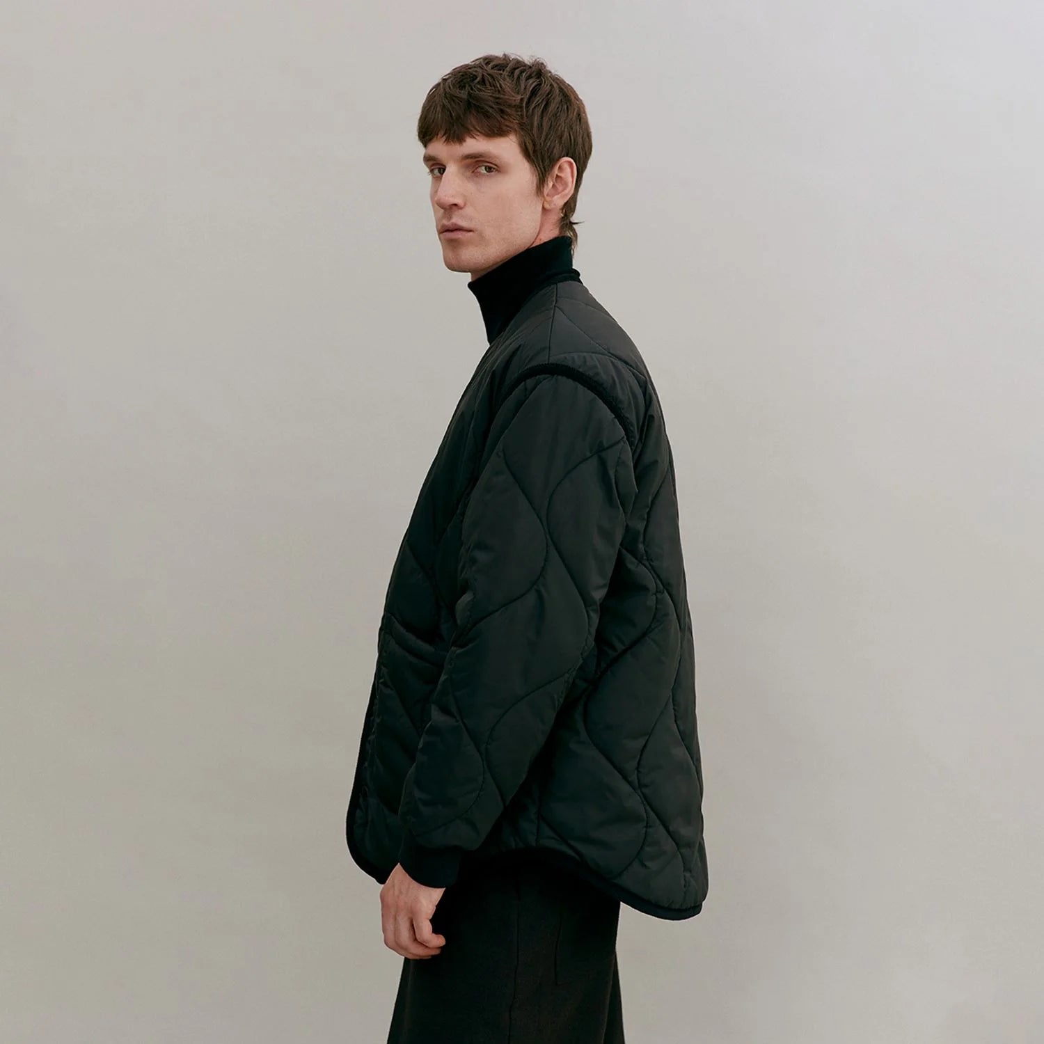 Quilted with a lightweight yet warm wadding, this liner features a structured silhouette, stepped hem and ribbed cuff.
